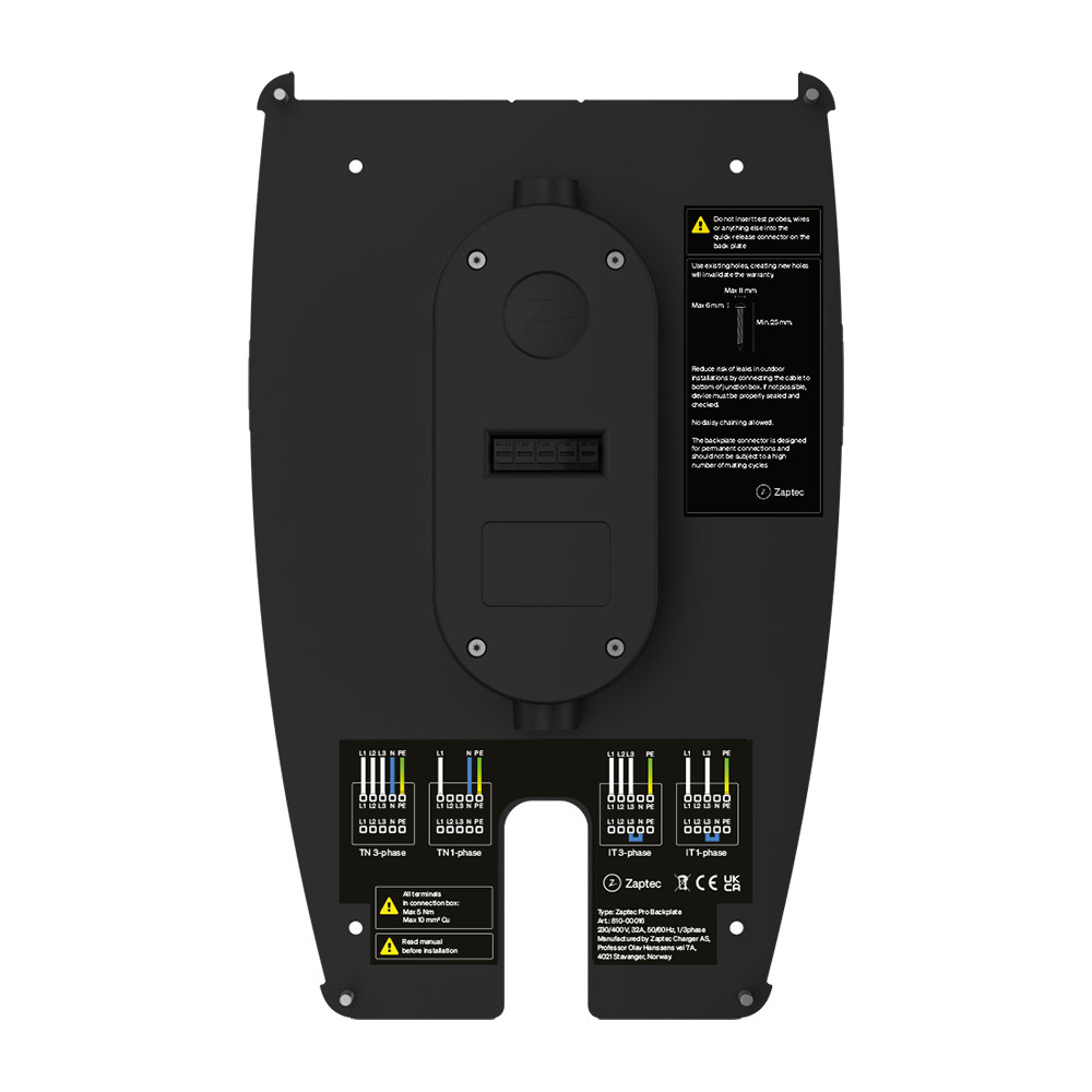 Hátlap Zaptec Pro csatlakozásához, integrált sorkapoccsal. A hátlap kötelező tartozéka a Zaptec Pro töltőknek! Amennyiben komplett töltőt vásárolnál, megveheted csomagban itt. A termék önmagában cserealkatrészként funkcionál.